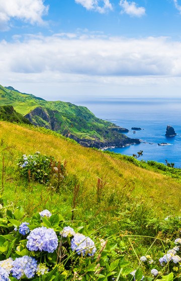 Situada no Grupo Ocidental do arquipélago, a Ilha das Flores é a maior deste grupo e destaca-se pelo seu relevo montanhoso, ravinas profundas e falésias gigantescas que caem a pique sobre o Atlântico. O Morro Alto, com 914 metros, marca o ponto mais elevado da ilha e oferece vistas incríveis sobre lagoas, pastagens e o oceano. Ao longo das estradas, milhares de hortênsias azuis acompanham cada curva, dando à ilha uma beleza quase mágica.